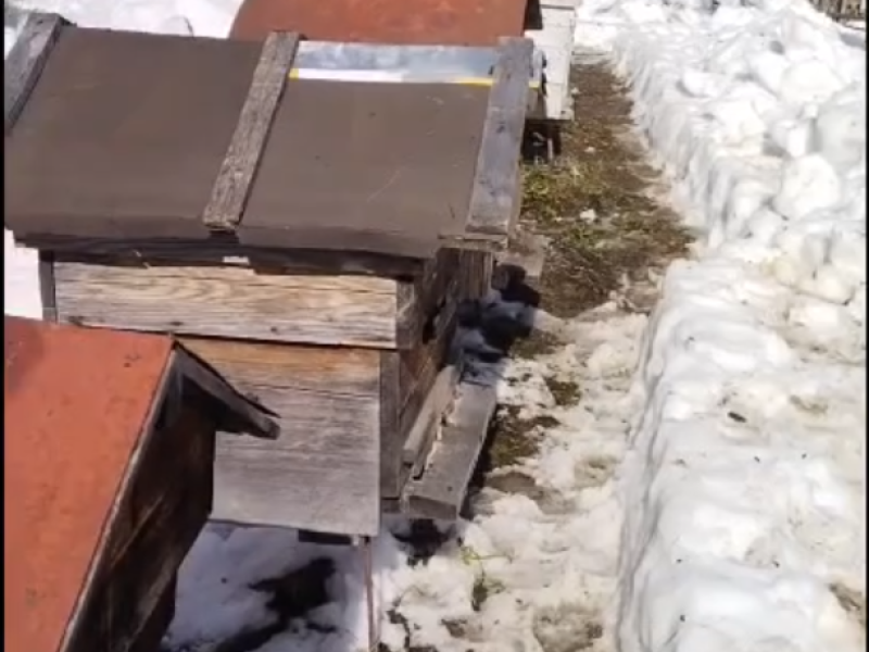 Пчелы еще в омшанике гудели, с нетерпением ждали облета. И вот она долгожданная воля, они дружно принялись облетываться. Радостно было видеть, что зимовку пережили все семьи, и все сильные!